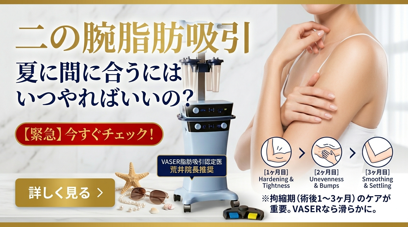この拘縮が完全に落ち着き、本来の滑らかな細い仕上がりになるまでには、平均して約3ヶ月の期間を要します。つまり、7月や8月の夏本番に完璧な状態の二の腕を披露したいのであれば、長袖で術後の圧迫着や内出血を自然に隠せる4月・5月の「今」が手術のデッドラインなのです。