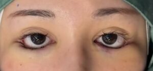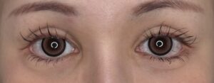 しっかりと黒目の下の白目が見えたいとご希望の患者様でしたので、しっかりと目の下から下げています。