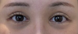 こちらの患者様は、目尻切開、たるみ取り併用二重全切開、グラマラス形成、切らないクマ取り、目頭切開(Z法)を組み合わせて行いました。