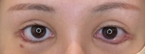 術後には下まぶたのラインの位置が下がり、二重全切開により目が開くようになり、目尻切開もすることにより4方向に目が大きくなりました。