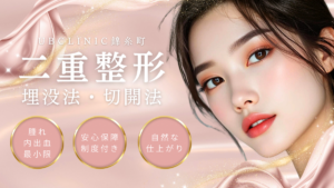 最も多くのクリニックで行われている方法で、極細の糸をまぶたに埋め込む方法です。メスを使用しない簡易的な方法であり、ダウンタイムは短くできますが、切開法に比べると、加齢や時間経過、外的刺激等により糸が緩みラインが崩れてしまうことがあります。