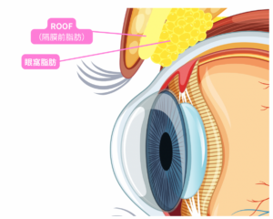ROOFは Retro Orbicularis Oculi Fat の略で、日本語では「隔膜前脂肪(かくまくぜんしぼう)」と呼ばれます。