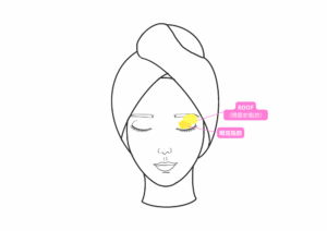 この状態では、目ヂカラが弱く見えるだけでなく、目を開けようとしておでこに力が入ってしまう原因にもなります